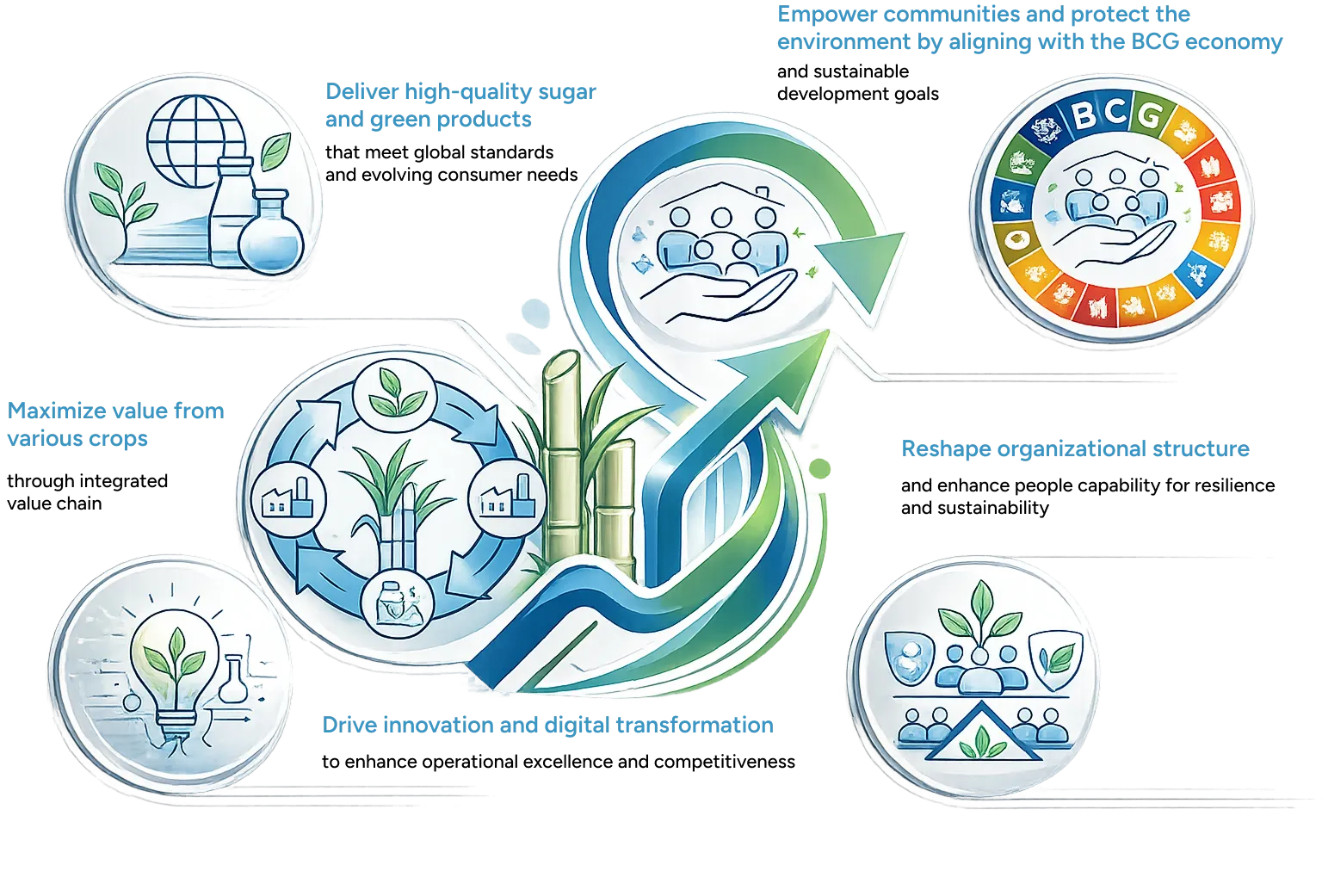 Deliver high-quality sugar and green products that meet global standards and evolving consumer needs
